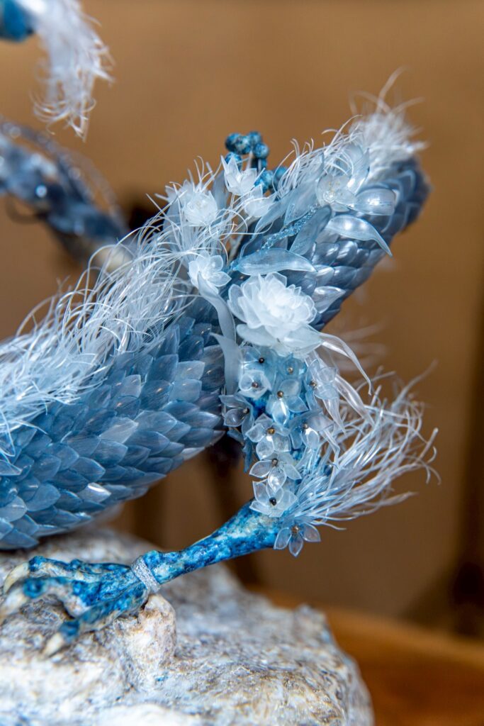 着色に藍を用いて、植物や水が豊かで美しい日本を龍を通して表現しました。